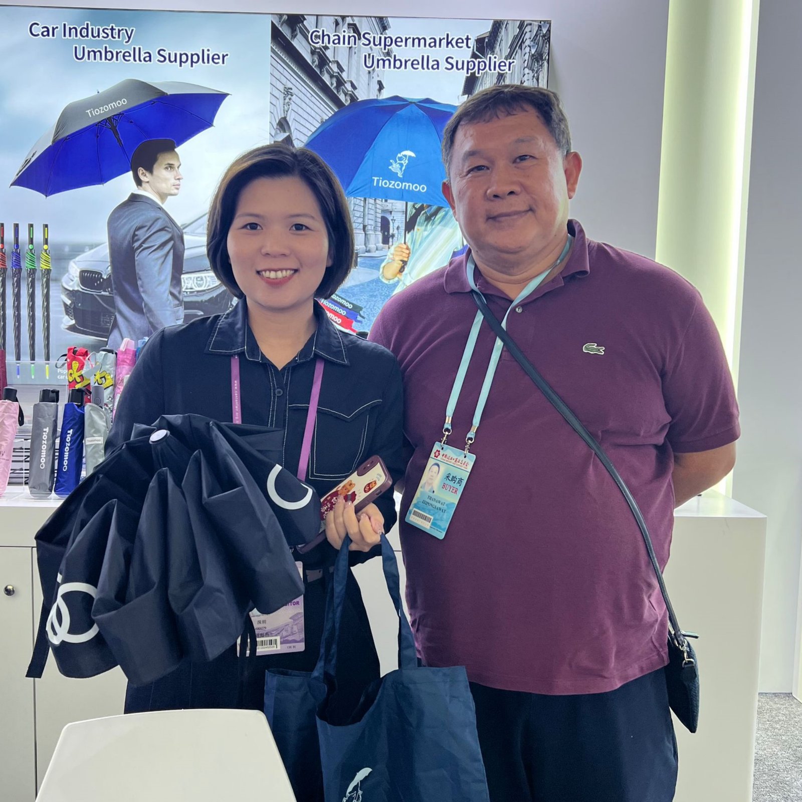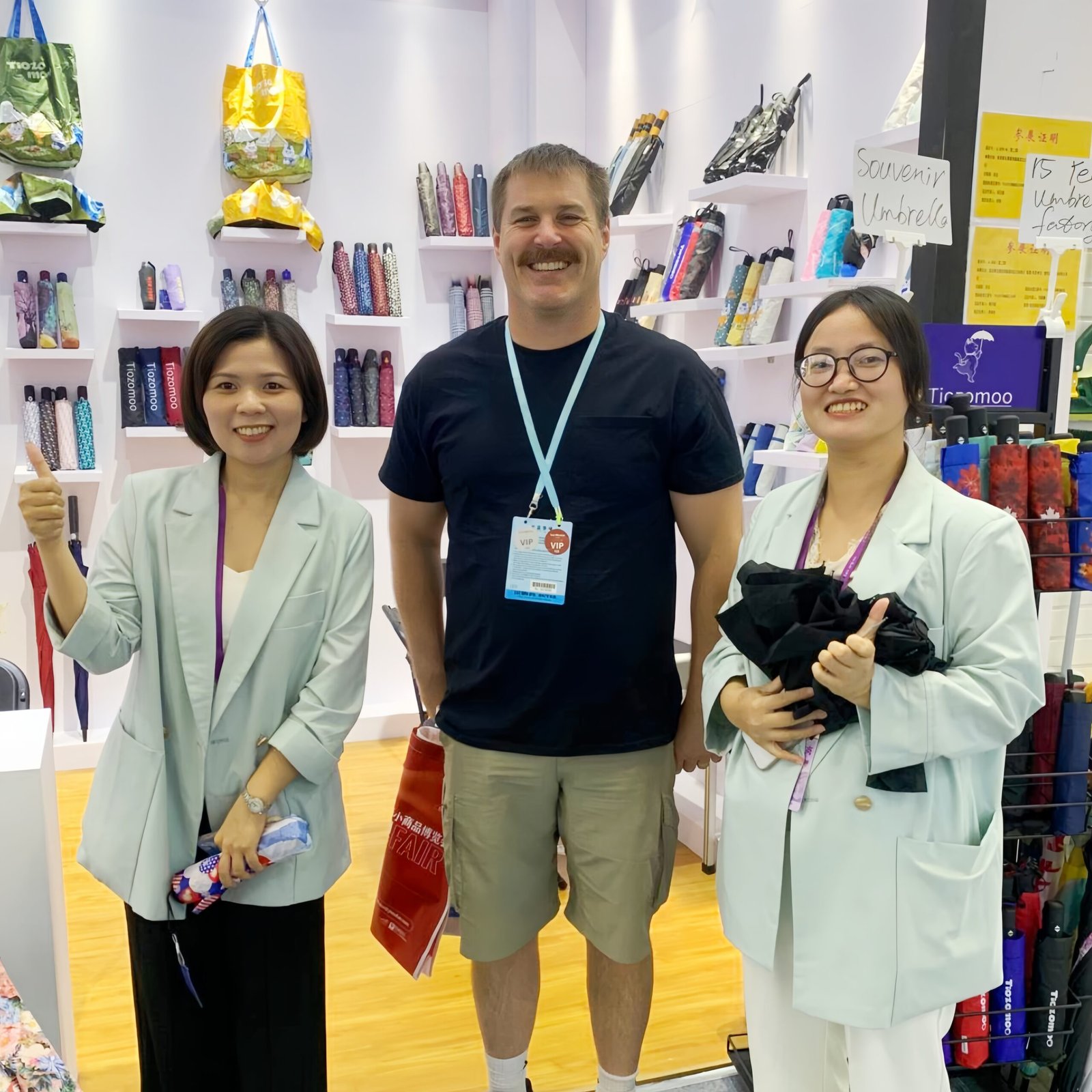 Shon, a boss of a large UK wholesaler, had sold poor-quality umbrellas, but regained confidence after seeing our quality.