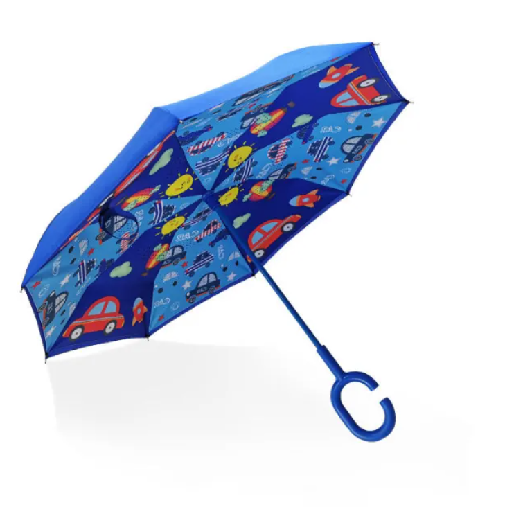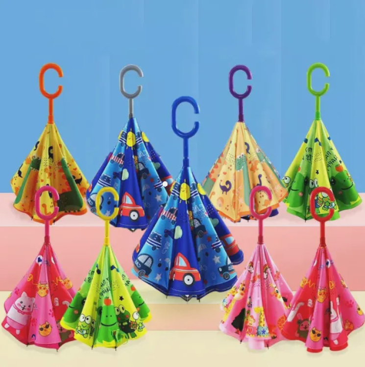 C-shaped Handle Double Layer Polyester Kid Invert Reverse Umbrella